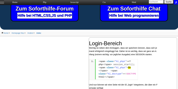 Der Soforthilfe-chat verspricht das ,was sein Name sagt. Hier sind Leute Online die sofort ihre hilfe anbieten. Seht in der OnlineListe nach und wenn einer Online ist werdet ihr auch antwort bekommen. Admine ,Moderatoren und Helfer sind unsere Spezialisten in Sachen Web Programierung